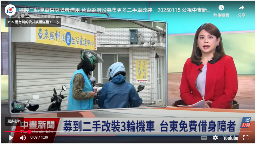 肢體障礙的民眾要外出購物或是看病行動受限,但如果能考到身障機車駕照,就不需要依賴別人自己可以出門,不過平常要借到3輪的特殊機車不容易。台東縣輔具暨生活重建中心現在就募集到一台二手機車,改裝成身障者使用的3輪機車,免費出借給身障者練習,還有專人陪同訓練參加考駕照,這項措施目前是全國首創,縣府希望能再募集更多機車改裝,提供更多身障者借用練習。